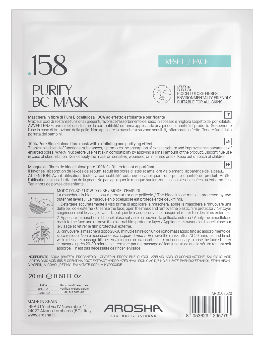 Mascarilla exfoliante y purificante en biocelulosa 100% pura