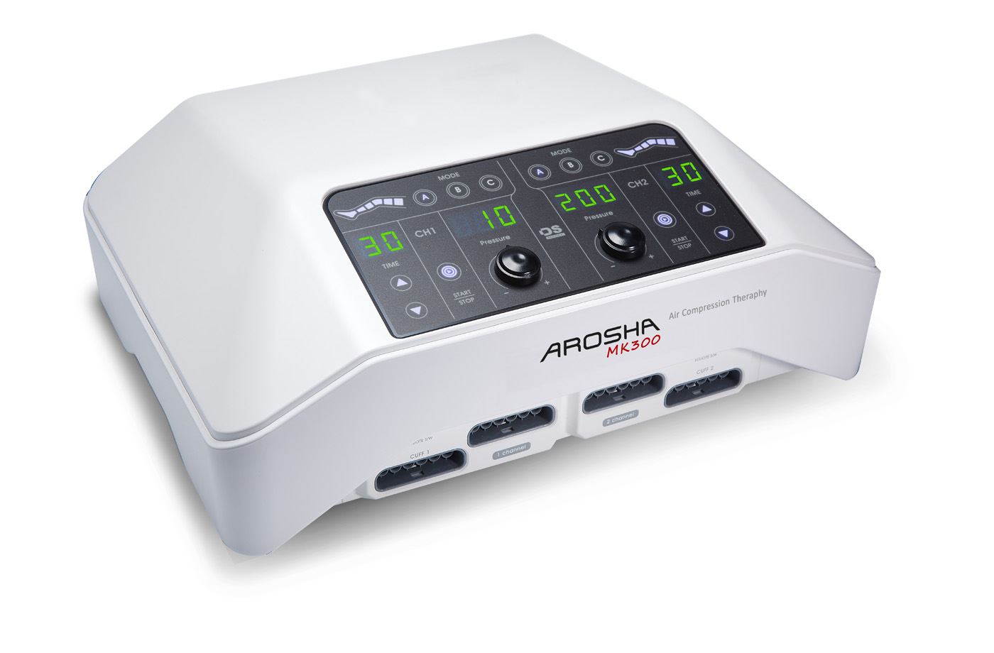 MK300 est un appareil performant avec un design compact et des programmes efficaces pour le drainage lymphatique, l'amélioration de la circulation et le massage musculaire. Le principe de fonctionnement nécessite que le corps principal de l’appareille insuffle de l'air dans les différentes chambres de la jambe et/ou les différents accessoires (bras, ceinture abdominale, brassard intégral).