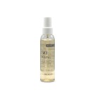 Trattamento ad effetto ristrutturante in due fasi sinergiche. La fase oleosa superiore, arricchita con gli oli di Mandorle Dolci, Jojoba, Rosa Mosqueta e un compound di oli fermentati (Oliva,