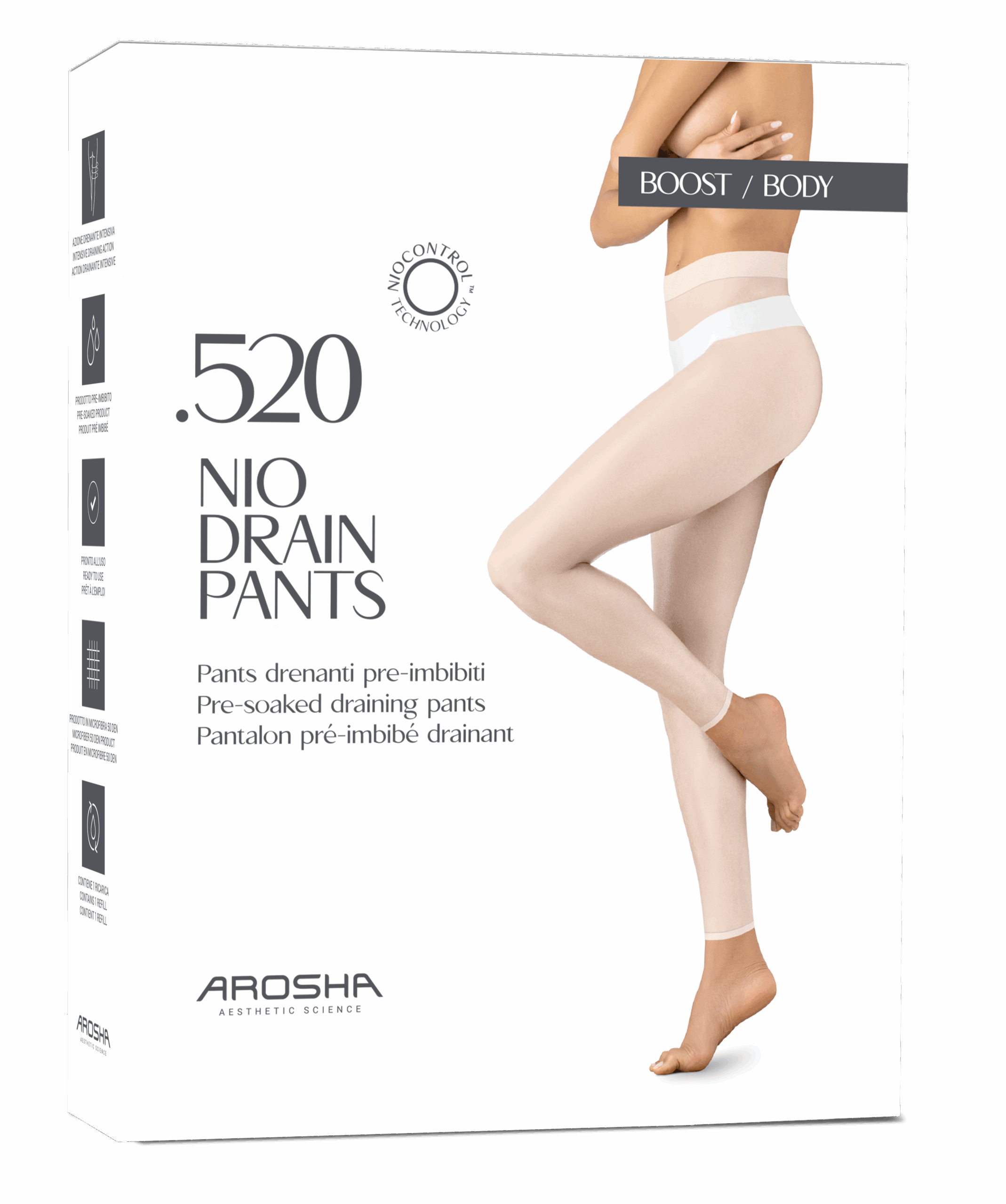 Home use cosmetic treatment with important draining properties designed with NIOCONTROL™ technology, an innovative delivery system based on Niosomes that gradually make the functional principles contained in the product better available. It is formulated with Birch and Dead Sea salts that counteract the stagnation of excess fluids and promote a remineralizing and detoxifying action. Its formula is also enriched with Centella and Escin which stimulate the microcirculation relieving the sense of heaviness and swelling in the legs.