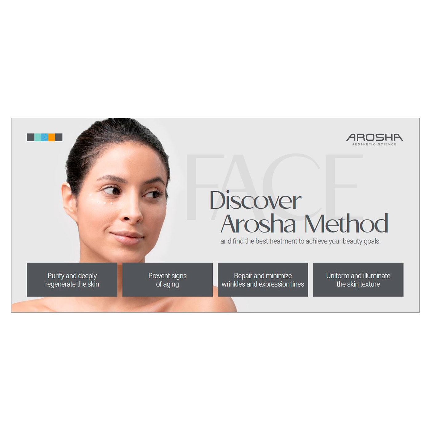 A professional, unique and distinctive Method. Combining science and technology, Arosha has developed a THREEPHASE strategy, applicable for face and body. RESET, RESTORE and ATTACK constantly supported by CHECK UP and BOOST to give result-oriented, synergistic action