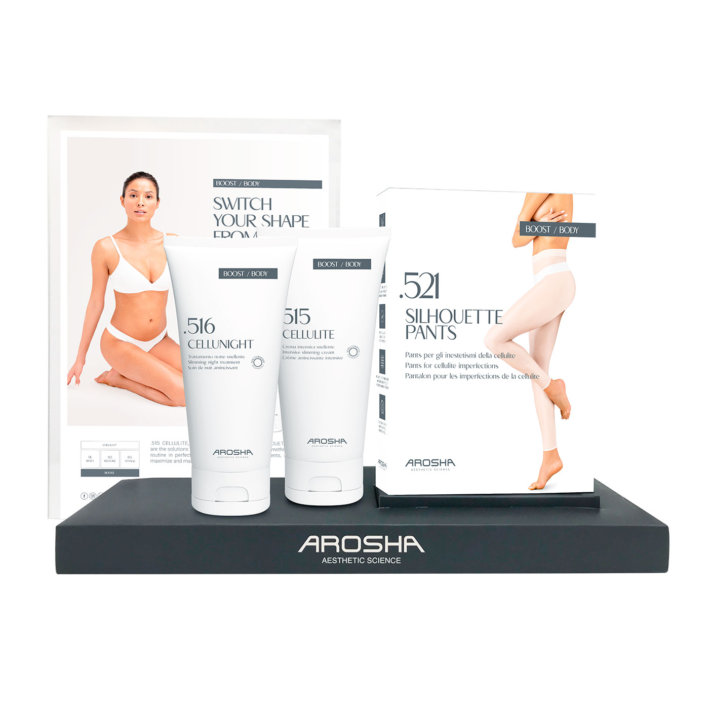 A professional, unique and distinctive Method. Combining science and technology, Arosha has developed a THREEPHASE strategy, applicable for face and body. RESET, RESTORE and ATTACK constantly supported by CHECK UP and BOOST to give result-oriented, synergistic action
